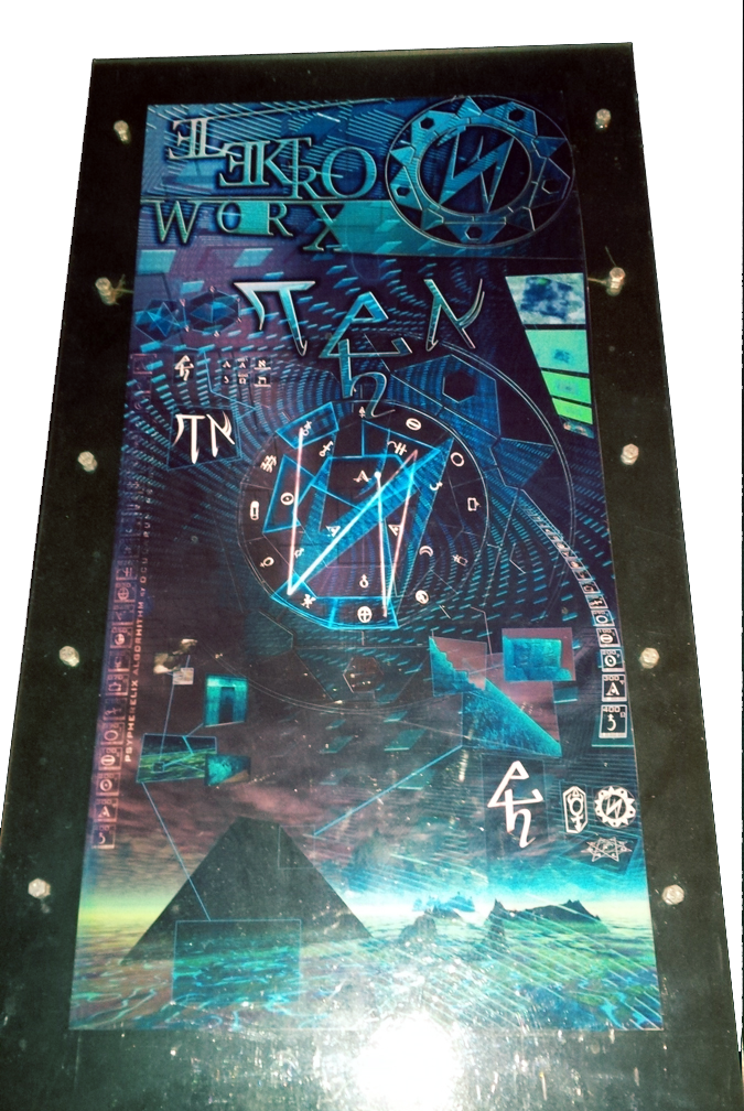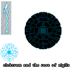The Qabalistic influences of the 233 Project inspired the serpentine sigil of EletroWorX. It was created by taking the Ægyptian symbol for electrum, and bending it along the rose of sigils tracing the words 'Elektro' and 'WorX' , then placed in a five pointed configuration.