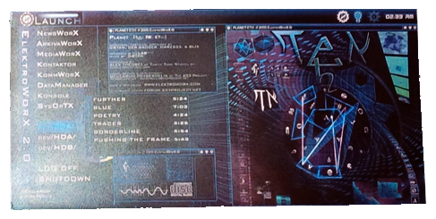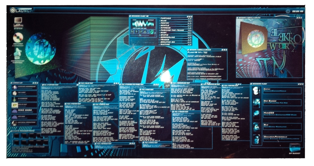 The insert for the full album folded out into a doulble sided poster. One side was made to resemble a UNIX gui. The lyrics were included as text files open in various windows. Actual album cover was depicted as a an image file also open in an OS window. the track listing appeard as mp3's in a playlist.