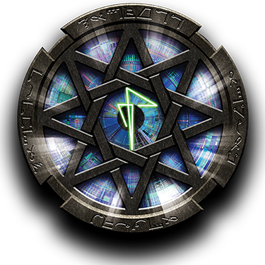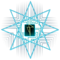 The octagram, often associated with Mercury and transmutation, represents the bond between matter and energy. The sigil in the center is proportionate to the golden triangle and was formed by tracing OCULARUM upon the Rose of Sigils.